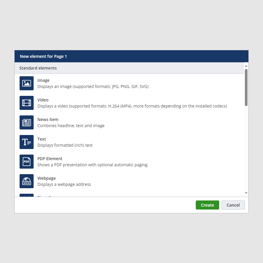 Whether for advertising or communication, SiteKiosk Online template designs with themes enhance the overall impact of your digital signage content.